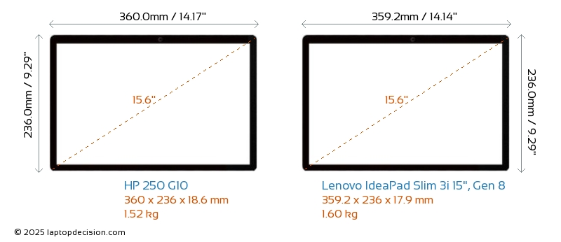 USBBoth 250 G10 and IdeaPad Slim 3i 15", Gen 8 feature 2x USB 3.2 USB-A ports.Both 250 G10 and IdeaPad Slim 3i 15", Gen 8 feature 1x USB 3.2 USB Type-C ports.