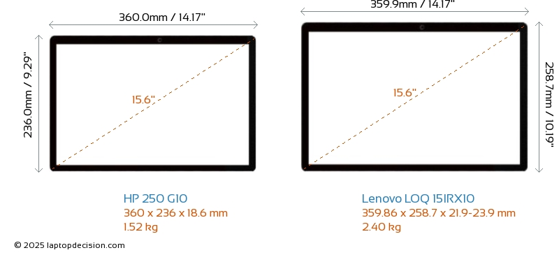 ThunderboltNeither 250 G10 nor LOQ 15IRX10 has Thunderbolt port.