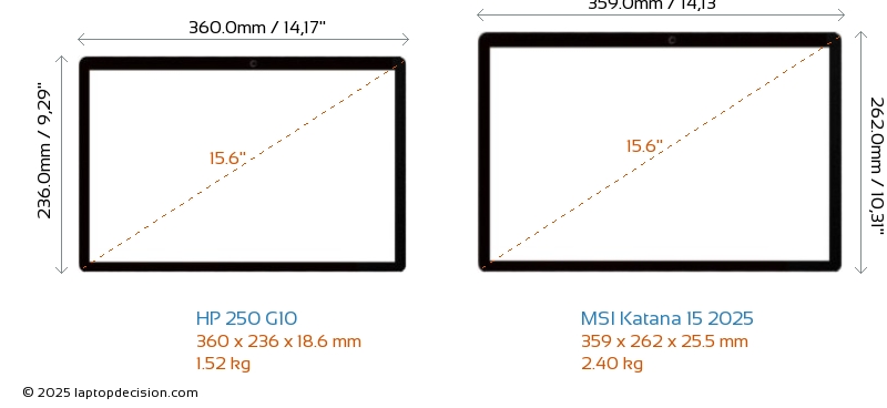 HDMIBoth 250 G10 and Katana 15 2025 feature an HDMI port. 250 G10 offers 1x HDMI 1.4, while Katana 15 2025 offers 1x HDMI 2.1.