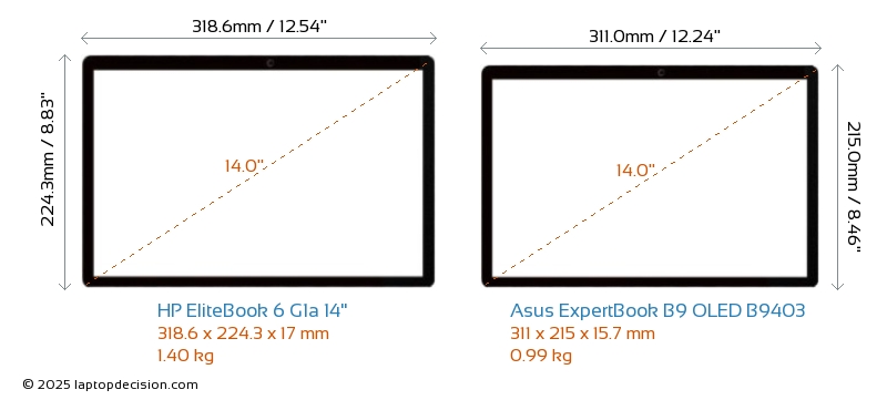 HDMIBoth EliteBook 6 G1a 14" and ExpertBook B9 OLED B9403 feature an HDMI port (1x HDMI 2.1) for connecting to external monitors.
