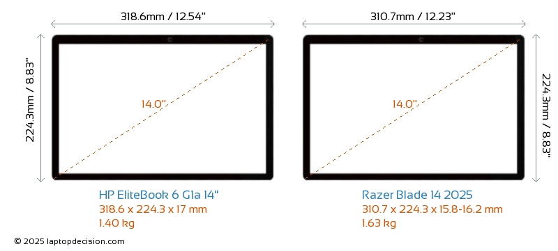 HDMIBoth EliteBook 6 G1a 14" and Blade 14 2025 feature an HDMI port (1x HDMI 2.1) for connecting to external monitors.