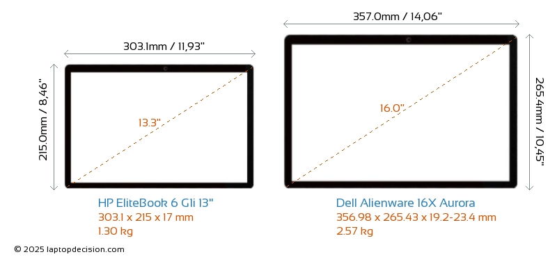 HDMIBoth EliteBook 6 G1i 13" and Alienware 16X Aurora feature an HDMI port (1x HDMI 2.1) for connecting to external monitors.