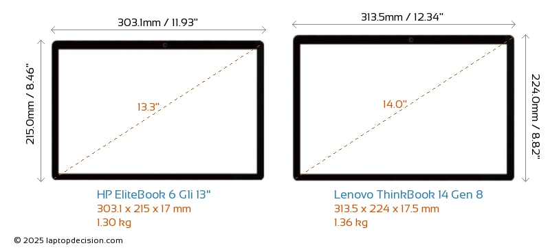 HDMIBoth EliteBook 6 G1i 13" and ThinkBook 14 Gen 8 feature an HDMI port (1x HDMI 2.1) for connecting to external monitors.