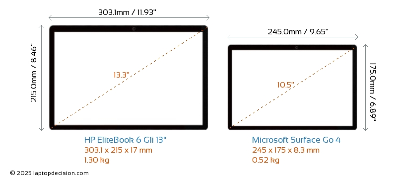 HDMI EliteBook 6 G1i 13" features an HDMI port (1x HDMI 2.1) for connecting to external monitors. Surface Go 4 does not have an HDMI port.