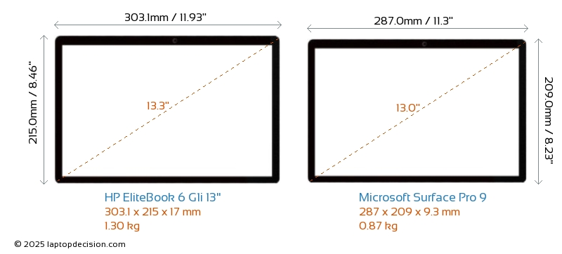 Audio Jack EliteBook 6 G1i 13" is equipped with a 3.5mm Audio Jack, allowing seamless connection to headphones and speakers. Surface Pro 9 does not have a 3.5mm Audio Jack.