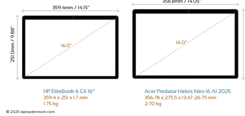 HDMIBoth EliteBook 6 G1i 16" and Predator Helios Neo 16 AI 2025 feature an HDMI port (1x HDMI 2.1) for connecting to external monitors.