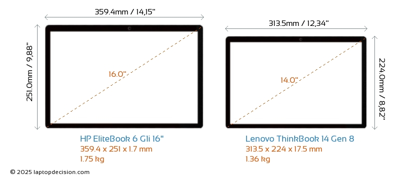 HDMIBoth EliteBook 6 G1i 16" and ThinkBook 14 Gen 8 feature an HDMI port (1x HDMI 2.1) for connecting to external monitors.