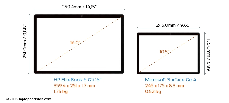 HDMI EliteBook 6 G1i 16" features an HDMI port (1x HDMI 2.1) for connecting to external monitors. Surface Go 4 does not have an HDMI port.