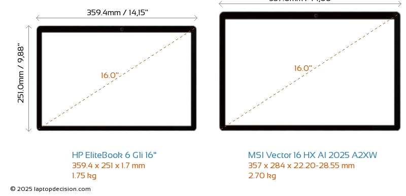 HDMIBoth EliteBook 6 G1i 16" and Vector 16 HX AI 2025 A2XW feature an HDMI port (1x HDMI 2.1) for connecting to external monitors.