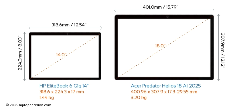 HDMIBoth EliteBook 6 G1q 14" and Predator Helios 18 AI 2025 feature an HDMI port (1x HDMI 2.1) for connecting to external monitors.