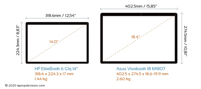 HDMIBoth EliteBook 6 G1q 14" and Vivobook 18 M1807 feature an HDMI port (1x HDMI 2.1) for connecting to external monitors.