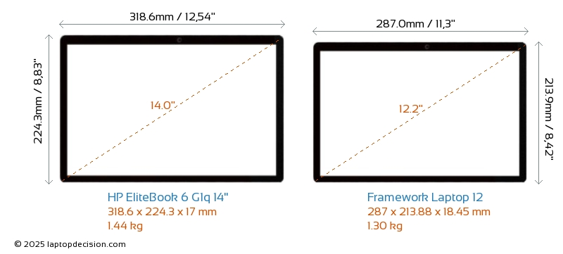 HDMIBoth EliteBook 6 G1q 14" and Laptop 12 feature an HDMI port. EliteBook 6 G1q 14" offers 1x HDMI 2.1, while Laptop 12 offers 4x HDMI 2.0.