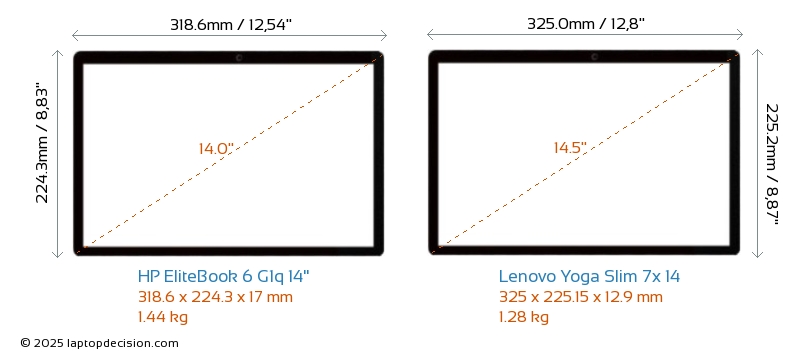 HDMI EliteBook 6 G1q 14" features an HDMI port (1x HDMI 2.1) for connecting to external monitors. Yoga Slim 7x 14 does not have an HDMI port.