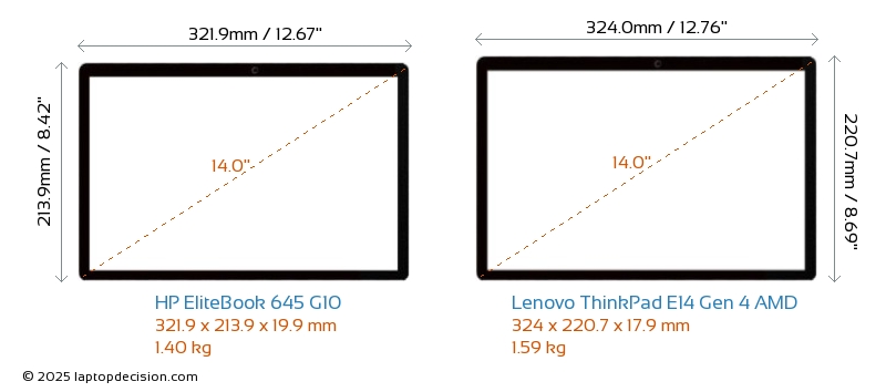 HDMIBoth EliteBook 645 G10 and ThinkPad E14 Gen 4 AMD feature an HDMI port. EliteBook 645 G10 offers 1x HDMI 2.1, while ThinkPad E14 Gen 4 AMD offers 1x HDMI 1.4.