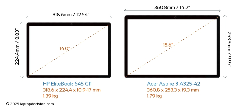 HDMIBoth EliteBook 645 G11 and Aspire 3 A325-42 feature an HDMI port. EliteBook 645 G11 offers 1x HDMI 2.1, while Aspire 3 A325-42 offers 1x HDMI 1.4.