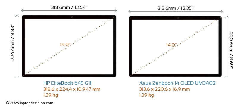 HDMIBoth EliteBook 645 G11 and Zenbook 14 OLED UM3402 feature an HDMI port (1x HDMI 2.1) for connecting to external monitors.