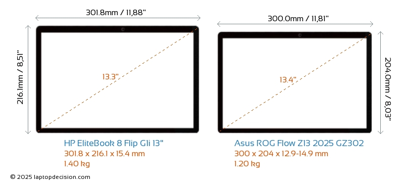 Audio JackBoth EliteBook 8 Flip G1i 13" and ROG Flow Z13 2025 GZ302 are equipped with a 3.5mm Audio Jack, providing seamless connection to headphones and speakers.