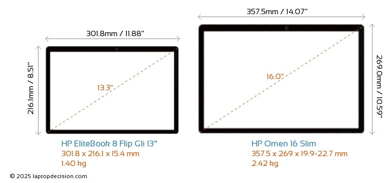 HDMIBoth EliteBook 8 Flip G1i 13" and Omen 16 Slim feature an HDMI port (1x HDMI 2.1) for connecting to external monitors.