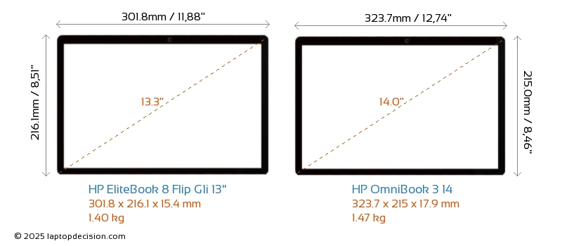 USBBoth EliteBook 8 Flip G1i 13" and OmniBook 3 14 have USB-A ports. EliteBook 8 Flip G1i 13" has 1x USB 3.2 USB-A ports, while OmniBook 3 14 has 2x USB 3.2 USB-A ports.Both EliteBook 8 Flip G1i 13" and OmniBook 3 14 have USB Type-C ports. EliteBook 8 Flip G1i 13" has 3x USB 4.0 USB Type-C ports, while OmniBook 3 14 has 1x USB 3.2 USB Type-C ports.