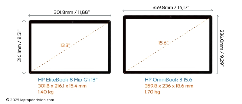 USBBoth EliteBook 8 Flip G1i 13" and OmniBook 3 15.6 have USB-A ports. EliteBook 8 Flip G1i 13" has 1x USB 3.2 USB-A ports, while OmniBook 3 15.6 has 2x USB 3.2 USB-A ports.Both EliteBook 8 Flip G1i 13" and OmniBook 3 15.6 have USB Type-C ports. EliteBook 8 Flip G1i 13" has 3x USB 4.0 USB Type-C ports, while OmniBook 3 15.6 has 1x USB 3.2 USB Type-C ports.