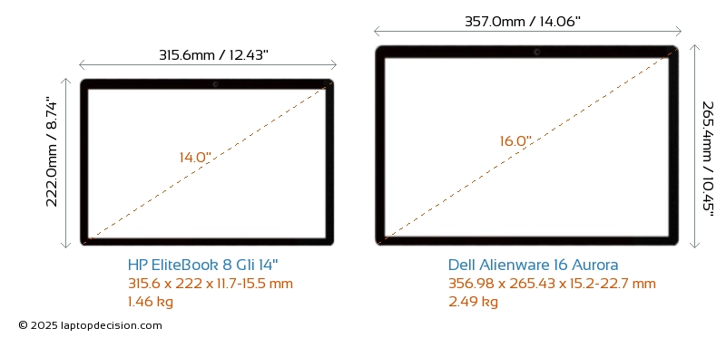 HDMIBoth EliteBook 8 G1i 14" and Alienware 16 Aurora feature an HDMI port (1x HDMI 2.1) for connecting to external monitors.