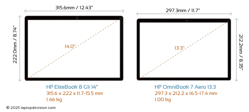 USBBoth EliteBook 8 G1i 14" and OmniBook 7 Aero 13.3 feature 2x USB 3.2 USB-A ports.Both EliteBook 8 G1i 14" and OmniBook 7 Aero 13.3 feature 2x USB 4.0 USB Type-C ports.