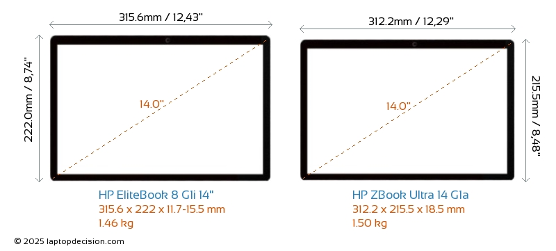 USBBoth EliteBook 8 G1i 14" and ZBook Ultra 14 G1a have USB-A ports. EliteBook 8 G1i 14" has 2x USB 3.2 USB-A ports, while ZBook Ultra 14 G1a has 1x USB 3.2 USB-A ports.Both EliteBook 8 G1i 14" and ZBook Ultra 14 G1a have USB Type-C ports. EliteBook 8 G1i 14" has 2x USB 4.0 USB Type-C ports, while ZBook Ultra 14 G1a has 3x USB 4.0 USB Type-C ports.