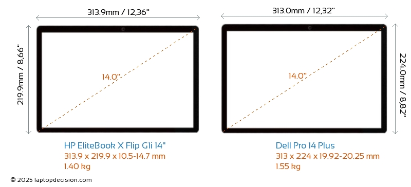 HDMIBoth EliteBook X Flip G1i 14" and Pro 14 Plus feature an HDMI port (1x HDMI 2.1) for connecting to external monitors.