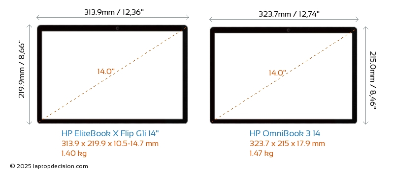 HDMIBoth EliteBook X Flip G1i 14" and OmniBook 3 14 feature an HDMI port. EliteBook X Flip G1i 14" offers 1x HDMI 2.1, while OmniBook 3 14 offers 1x HDMI 1.4.