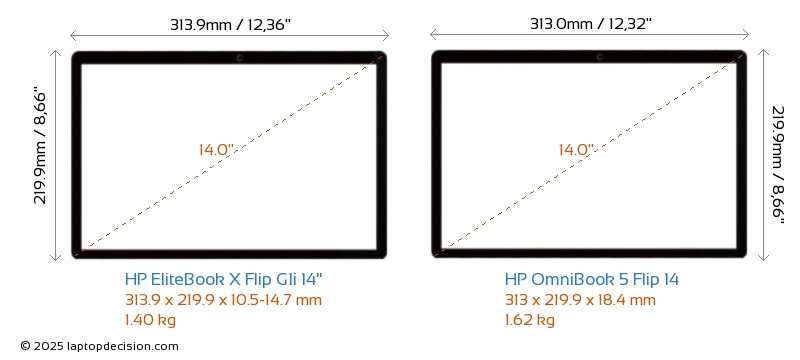 USBBoth EliteBook X Flip G1i 14" and OmniBook 5 Flip 14 have USB-A ports. EliteBook X Flip G1i 14" has 1x USB 3.2 USB-A ports, while OmniBook 5 Flip 14 has 2x USB 3.2 USB-A ports.Both EliteBook X Flip G1i 14" and OmniBook 5 Flip 14 have USB Type-C ports. EliteBook X Flip G1i 14" has 3x USB 4.0 USB Type-C ports, while OmniBook 5 Flip 14 has 2x USB 3.2 USB Type-C ports.