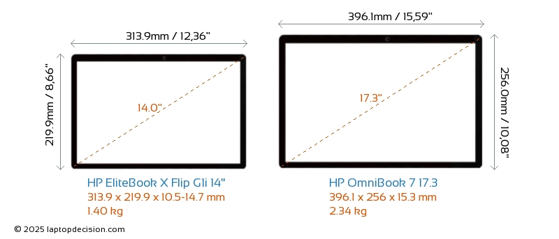 USBBoth EliteBook X Flip G1i 14" and OmniBook 7 17.3 have USB-A ports. EliteBook X Flip G1i 14" has 1x USB 3.2 USB-A ports, while OmniBook 7 17.3 has 3x USB 3.2 USB-A ports.Both EliteBook X Flip G1i 14" and OmniBook 7 17.3 have USB Type-C ports. EliteBook X Flip G1i 14" has 3x USB 4.0 USB Type-C ports, while OmniBook 7 17.3 has 2x USB 4.0 USB Type-C ports.