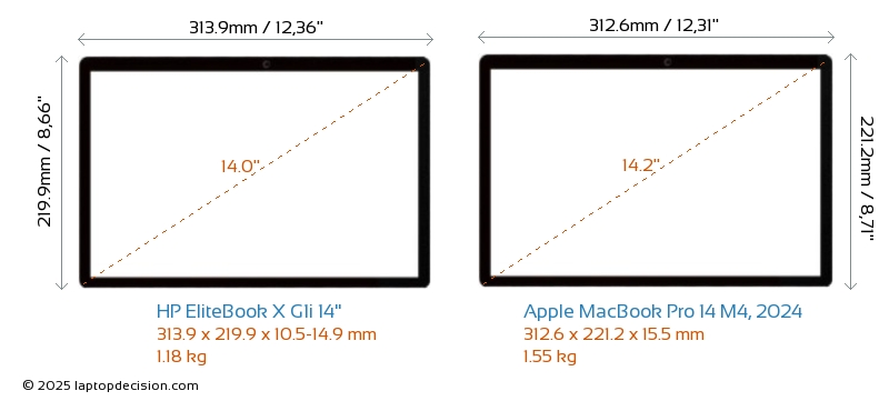 Audio JackBoth EliteBook X G1i 14" and MacBook Pro 14 M4, 2024 are equipped with a 3.5mm Audio Jack, providing seamless connection to headphones and speakers.