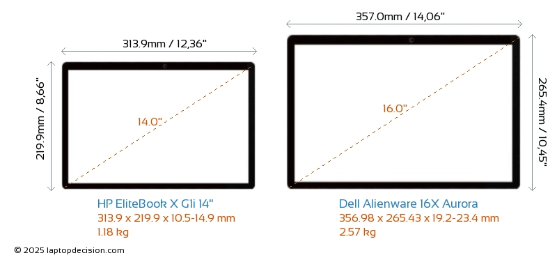 HDMIBoth EliteBook X G1i 14" and Alienware 16X Aurora feature an HDMI port (1x HDMI 2.1) for connecting to external monitors.