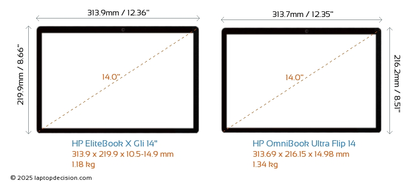 HDMI EliteBook X G1i 14" features an HDMI port (1x HDMI 2.1) for connecting to external monitors. OmniBook Ultra Flip 14 does not have an HDMI port.
