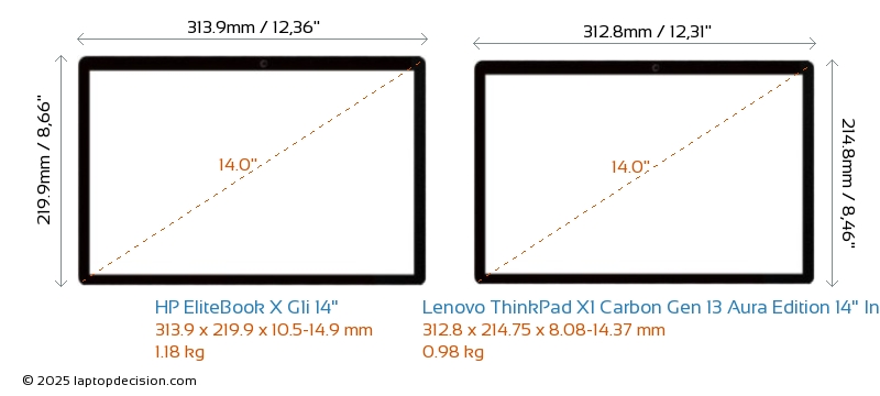 HDMIBoth EliteBook X G1i 14" and ThinkPad X1 Carbon Gen 13 Aura Edition 14" Intel feature an HDMI port (1x HDMI 2.1) for connecting to external monitors.