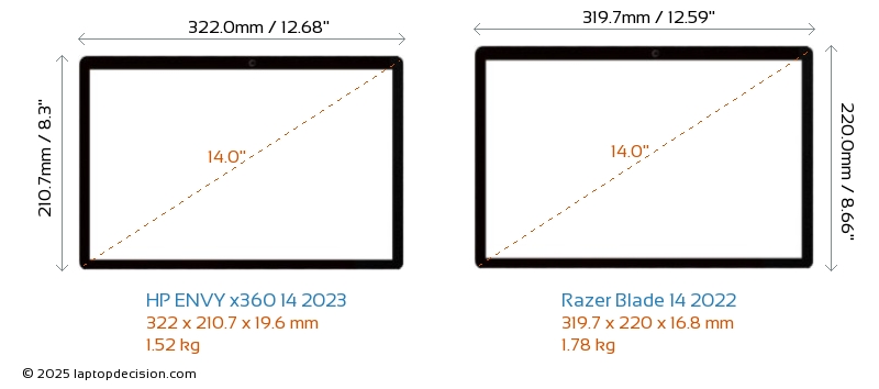 USBBoth ENVY x360 14 2023 and Blade 14 2022 feature 2x USB 3.2 USB-A ports.Both ENVY x360 14 2023 and Blade 14 2022 have USB Type-C ports. ENVY x360 14 2023 has 1x USB 3.2 USB Type-C ports, while Blade 14 2022 has 2x USB 3.2 USB Type-C ports.