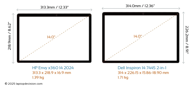 HDMIBoth Envy x360 14 2024 and Inspiron 14 7445 2-in-1 feature an HDMI port. Envy x360 14 2024 offers 1x HDMI 2.1, while Inspiron 14 7445 2-in-1 offers 1x HDMI 1.4.