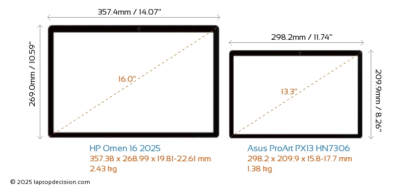USBBoth Omen 16 2025 and ProArt PX13 HN7306 have USB-A ports. Omen 16 2025 has 3x USB 3.2 USB-A ports, while ProArt PX13 HN7306 has 1x USB 3.2 USB-A ports.Both Omen 16 2025 and ProArt PX13 HN7306 have USB Type-C ports. Omen 16 2025 has 1x USB 4.0 USB Type-C ports, while ProArt PX13 HN7306 has 2x USB 4.0 USB Type-C ports.
