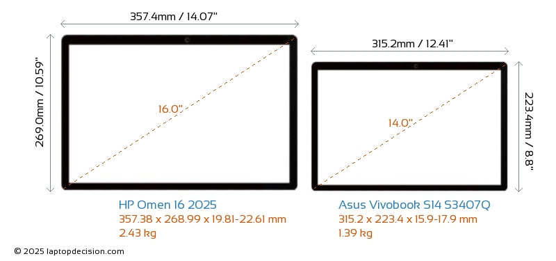 Audio JackBoth Omen 16 2025 and Vivobook S14 S3407Q are equipped with a 3.5mm Audio Jack, providing seamless connection to headphones and speakers.