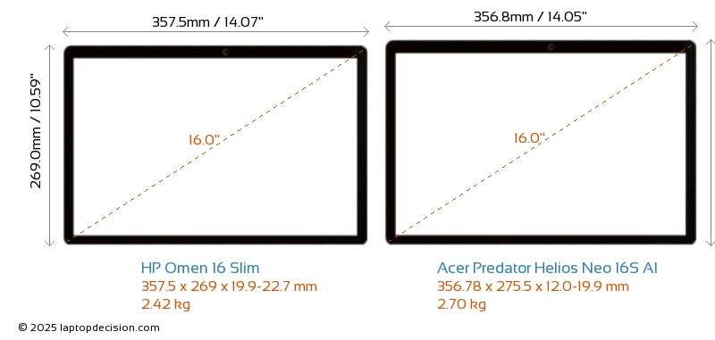 HDMIBoth Omen 16 Slim and Predator Helios Neo 16S AI feature an HDMI port (1x HDMI 2.1) for connecting to external monitors.