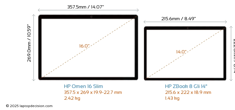 HDMIBoth Omen 16 Slim and ZBook 8 G1i 14" feature an HDMI port (1x HDMI 2.1) for connecting to external monitors.