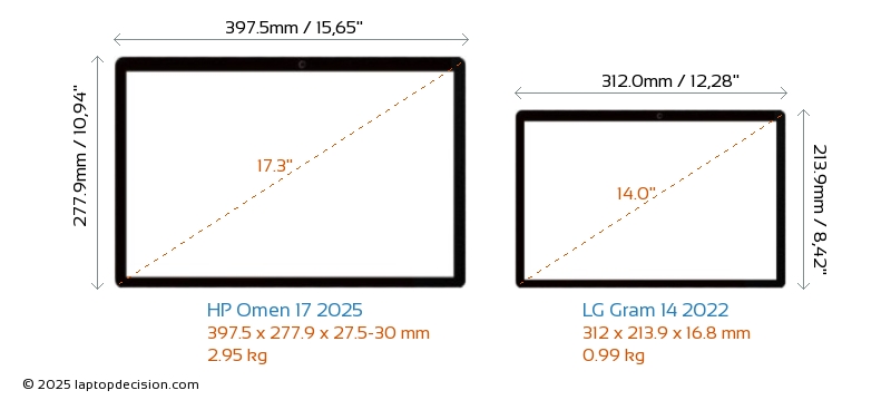 HDMIBoth Omen 17 2025 and Gram 14 2022 feature an HDMI port. Omen 17 2025 offers 1x HDMI 2.1, while Gram 14 2022 offers 1x HDMI 2.0.