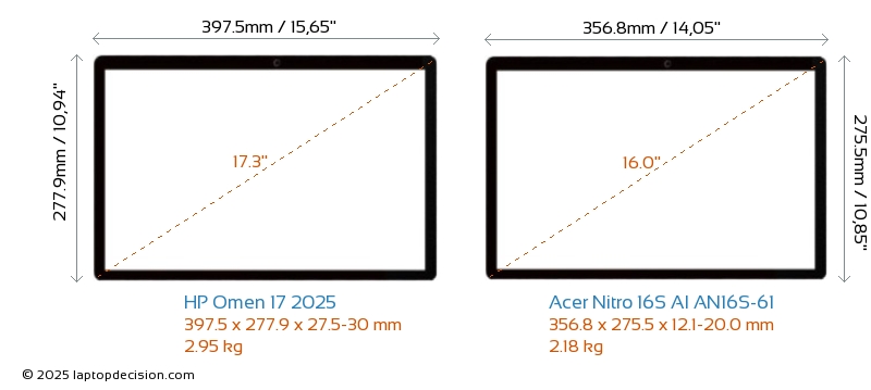 HDMIBoth Omen 17 2025 and Nitro 16S AI AN16S-61 feature an HDMI port (1x HDMI 2.1) for connecting to external monitors.