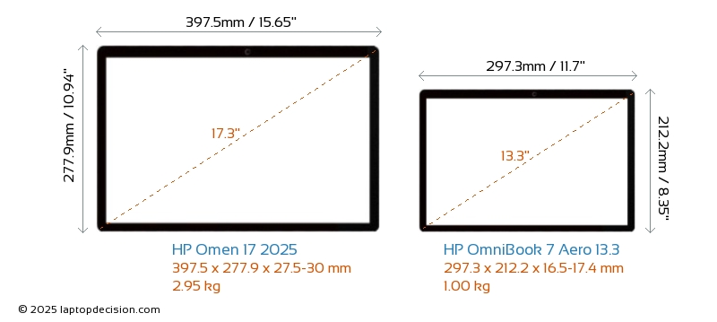 Audio JackBoth Omen 17 2025 and OmniBook 7 Aero 13.3 are equipped with a 3.5mm Audio Jack, providing seamless connection to headphones and speakers.