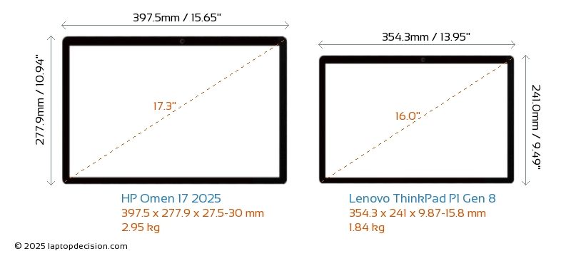 Wifi ThinkPad P1 Gen 8 features a more advanced Wi-Fi standard v7, providing faster and more reliable wireless connections compared to Omen 17 2025 (v6E).