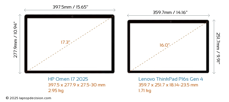 Wifi ThinkPad P16s Gen 4 features a more advanced Wi-Fi standard v7, providing faster and more reliable wireless connections compared to Omen 17 2025 (v6E).