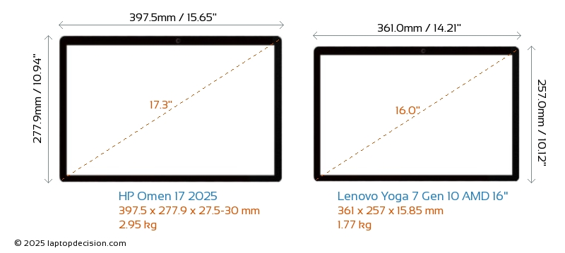 HDMIBoth Omen 17 2025 and Yoga 7 Gen 10 AMD 16" feature an HDMI port. Omen 17 2025 offers 1x HDMI 2.1, while Yoga 7 Gen 10 AMD 16" offers 1x HDMI 1.4.