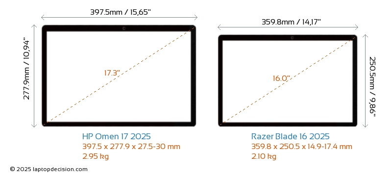 SD Card Reader Blade 16 2025 is equipped with an SD Card Reader for easy access to memory cards. Omen 17 2025 does not have an SD Card Reader.