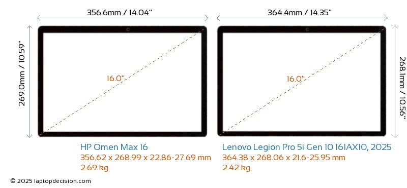 HDMIBoth Omen Max 16 and Legion Pro 5i Gen 10 16IAX10, 2025 feature an HDMI port (1x HDMI 2.1) for connecting to external monitors.