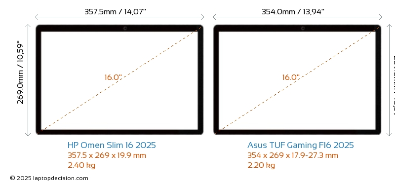 HDMIBoth Omen Slim 16 2025 and TUF Gaming F16 2025 feature an HDMI port (1x HDMI 2.1) for connecting to external monitors.